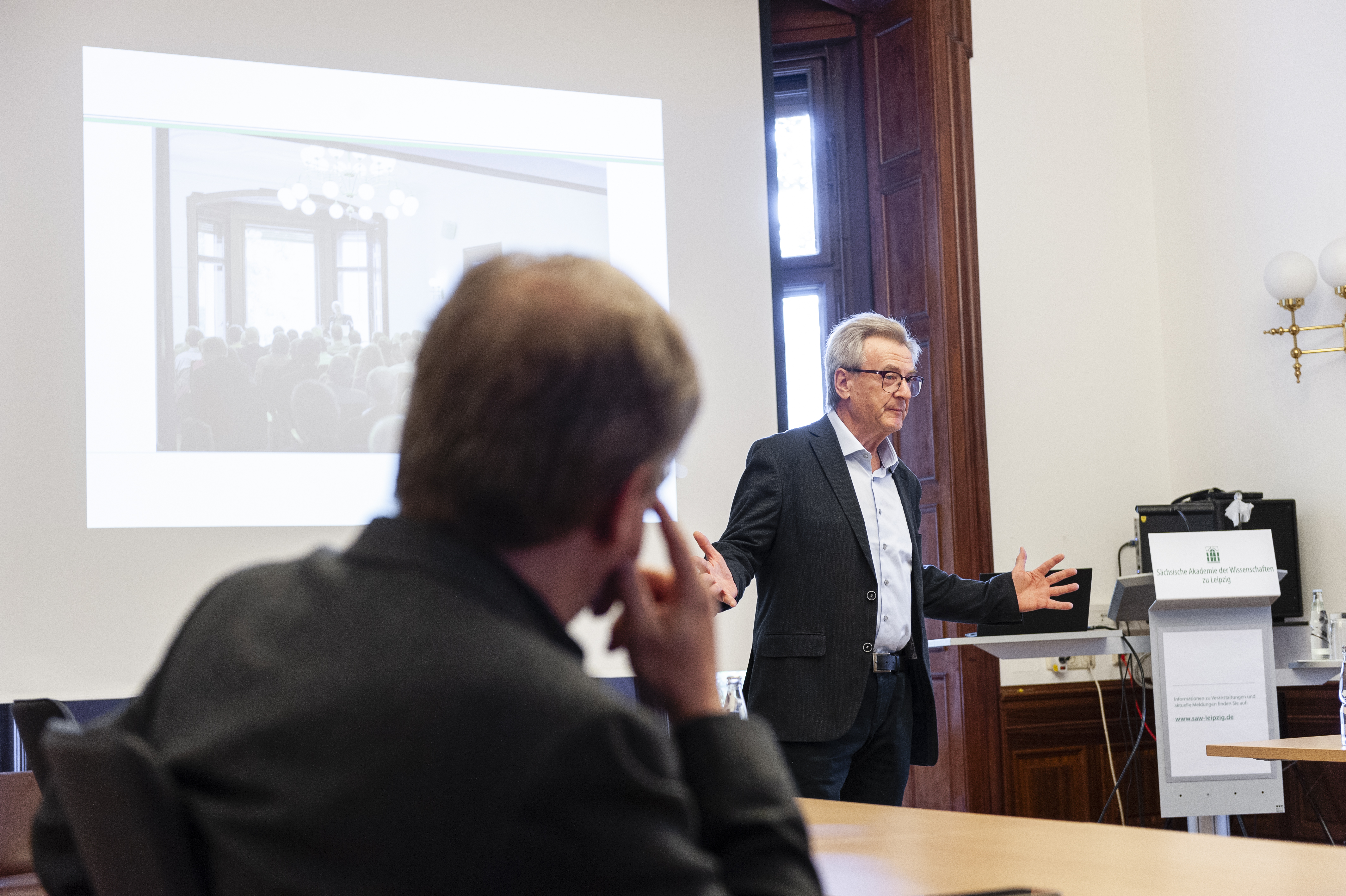 Akademie-Präsident Prof. Dr. Hans Wiesmeth informierte zudem über die wissenschaftliche Tätigkeit der Sächsischen Akademie der Wissenschaften zu Leipzig. Foto: Marcus Karsten