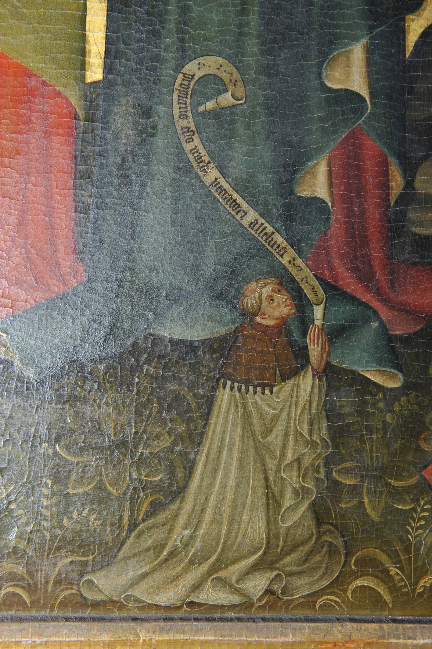 Halberstadt, Liebfrauen, Altarretabel Barbarakapelle, Detail Stifter, um 1420-1430